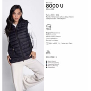 El Chaleco Acolchado de Nylon es la combinación perfecta de ligereza, abrigo y resistencia. Fabricado con tejido de nylon de alta calidad y un relleno suave de poliéster, ofrece una excelente protección contra el viento y temperaturas frescas sin sacrificar movilidad. Su diseño cuenta con un cierre metálico duradero y bolsillos frontales funcionales, ideales para mantener las manos abrigadas o guardar pequeños objetos de manera segura. Perfecto para uso casual, empresarial o en exteriores, este chaleco es una opción versátil para mantenerte protegido con estilo.